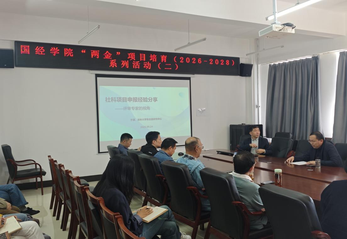 9月24日,乐游棋牌 于双创中心B429会议室开展“两金”培育(2026-2028)系列专项活动(二)。本次活动特邀吉林大学东北亚研究中心副主任于潇教授,就国家社科基金项目申报经验进行专题分享。乐游棋牌 副院长杨立国主持会议,全体专任教师参会。