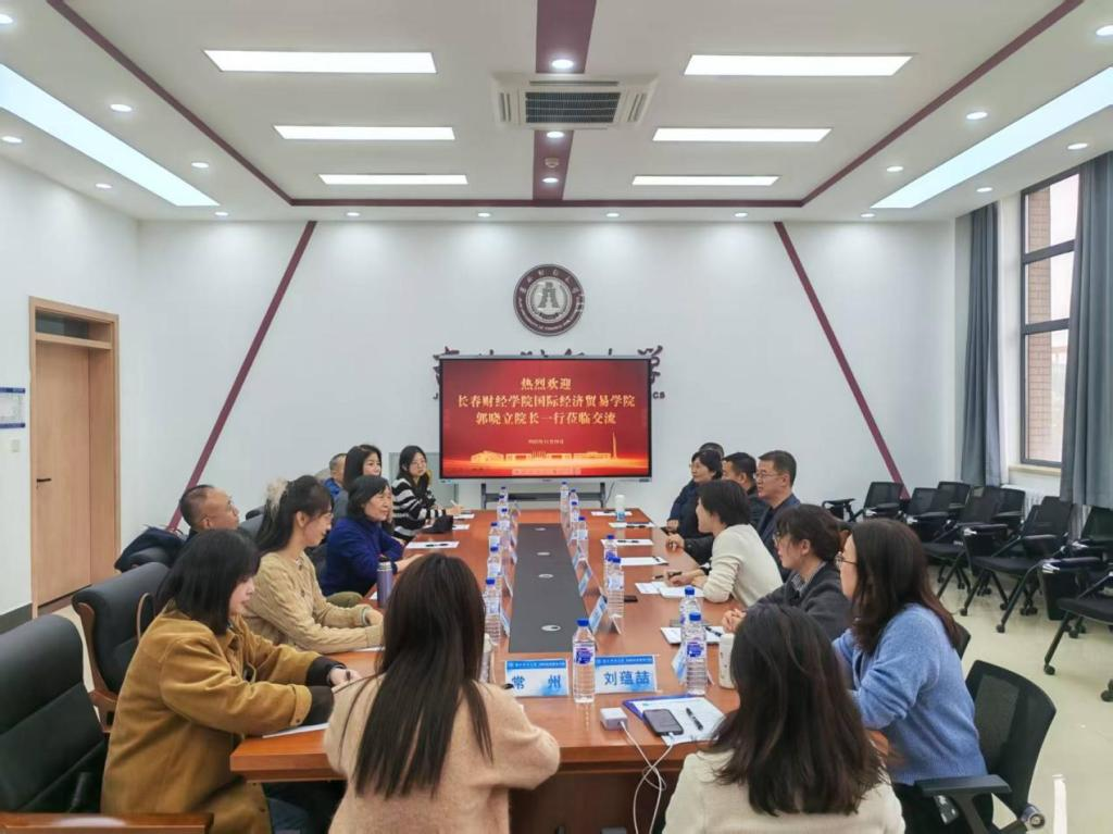 11月26日,长春财经乐游棋牌 乐游·棋牌(中国)官方网站 院长郭晓立一行到访我校乐游·棋牌(中国)官方网站 ,双方就国际商务专业建设中的课程建设、实习实践、学科竞赛等议题开展座谈。